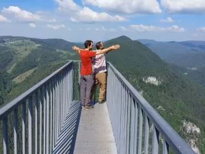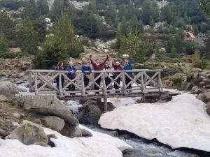 כבר ביום הטרק הראשון, בו טיילנו בנקיק צר המכונה קניון השטן, גילינו כי חורף 2022 היה קשה במיוחד בבלקן. הסופות ושצף הנחלים פשוט הרסו את הגשרים החוצים את הנחל, עליהם עובר המסלול. אל דאגה, תמיד יש מישו. חבלים ושאקלים הוצאו מהתרמיל הכבד ונמתחו בשיא המהירות בין עצי האורן, כדי לספק למטיילים מעבר בטוח. לפעם הבאה זכרו- לא לפקפק במדריך אלפיני, שאביו ייסד את בית הספר לאלפיניזם בבולגריה, ושזכה לא מכבר באליפות בולגריה לסקי אוף פיסט….