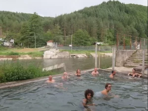 לאחר שעזבנו את קובצ'ביצה בכביש המתפתל היורד מההר, רגע לפני שהגענו לעיירה הבאה, עידן ביקש מהנהג שלנו לעצור לרגע לצד הכביש. ירדנו בהיסוס וגילינו כי אנחנו נמצאים במקום בו נובע מעיין חם ממש לתוך אגם… איזה כיף שיש מי שמכיר כל פינה!